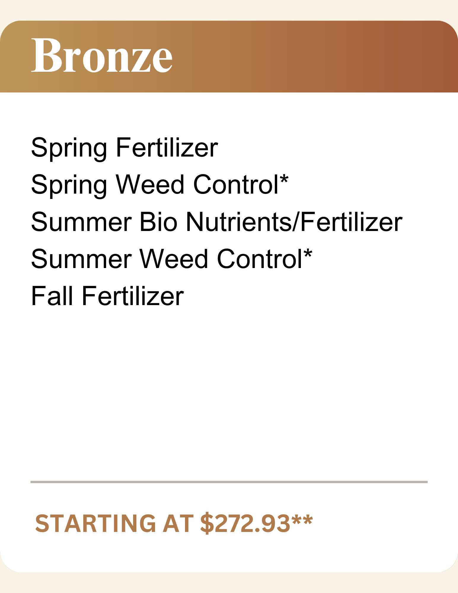 ** Price includes 10% prepaid discount. Tax Extra. Based on 2000 sq. ft. lawn.